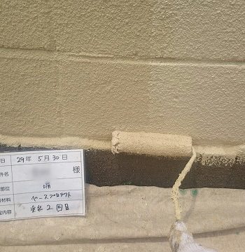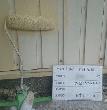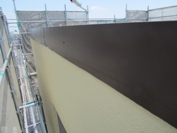 外壁はモルタルとスパンドレールの2種類の素材で北面、南面でちがいました。塗料も合わせて外壁には2種類ちがうものを塗りました。モルタル外壁はクラック(ひび割れ)がかなりありました。補修して塗り仕上げました。