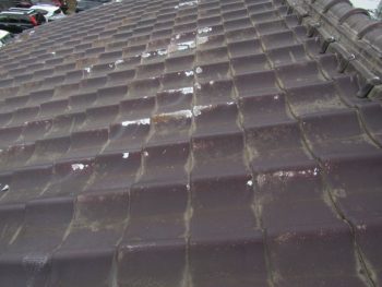 屋根の旧塗膜が剥がれ、塗膜の性能を失った状態でした。屋根、外壁、樋や雨戸、基礎と全て塗り替えるので費用を抑えることができるアウトレット塗料をご提案させていただきました。お客様のご要望の色がありましたので実現することができました。