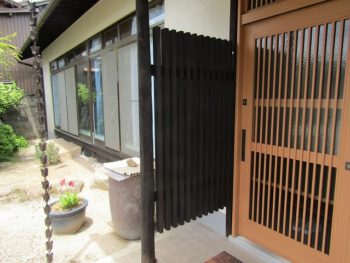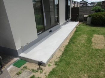 屋根はトタン屋根の方の劣化がひどいので、サビ止めをして塗装しました。外壁はひび割れや汚れが目立っていましたので、ひび割れにも紫外線にも強く、長持ちする無機質系塗料をご提案させていただきました。掃き出し窓の前のタイルは撤去しコンクリートで打設しました。