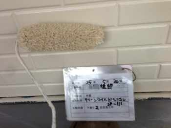 既存のタイル柄を生かしたダブルトーン仕上げをご提案させていただきました。さらに長期メンテナンスフリーのK2コート(フッ素樹脂系光触媒)も施工させていただきました。