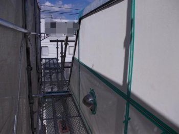 前回住宅の塀の塗装工事をさせていただいたお客様です。 今回は店舗の塗装をご依頼いただきました。 瓦棒の屋根は遮熱塗料のミラクールをご提案させていただきました。