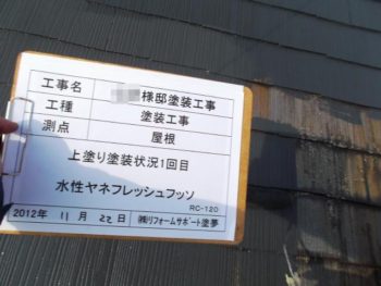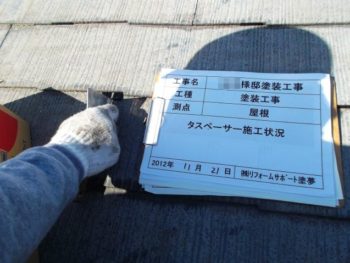 水性ヤネフレッシュで塗装し、タスペーサーを付けるご提案をいたしました。