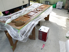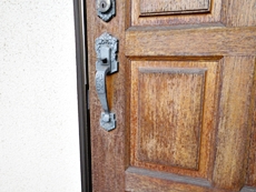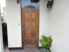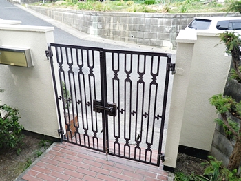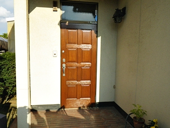 ドアが汚れてきたので塗装で何とかしたいと思った。ドアの完成を見て門柱もお願いしました。