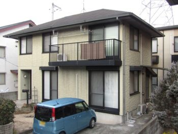 - 塗装前の全景です。外壁はALCパネルで塗装メンテナンスで防水することが重要です。
