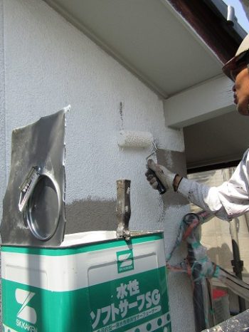 - 外壁は厚膜仕様の塗装です。微弾性の下塗り材で山上げをし、厚みを持たせます。ひび割れしにくくなります。