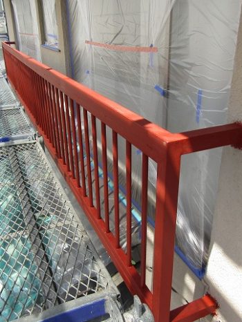 - 窓フェンスにサビ止めを塗ったところです。サビ止めを密着させるため、ケレン作業で細かい傷を付けました。