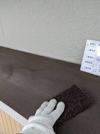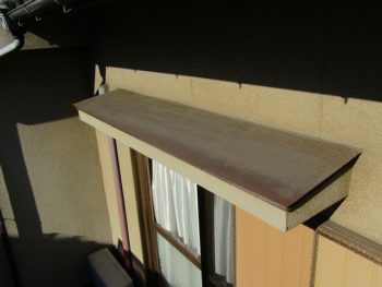 - ひさしや雨戸などの板金には塗装の前にケレンをしています。細かい傷を付けて塗料が密着しやすいようにします。