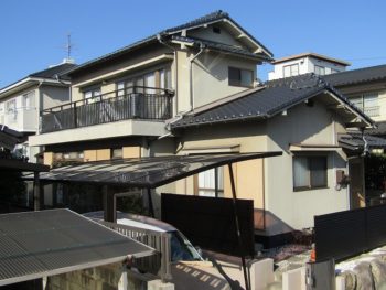 - 塗装前の全景です。屋根は陶器瓦で特に問題ありませんでした。